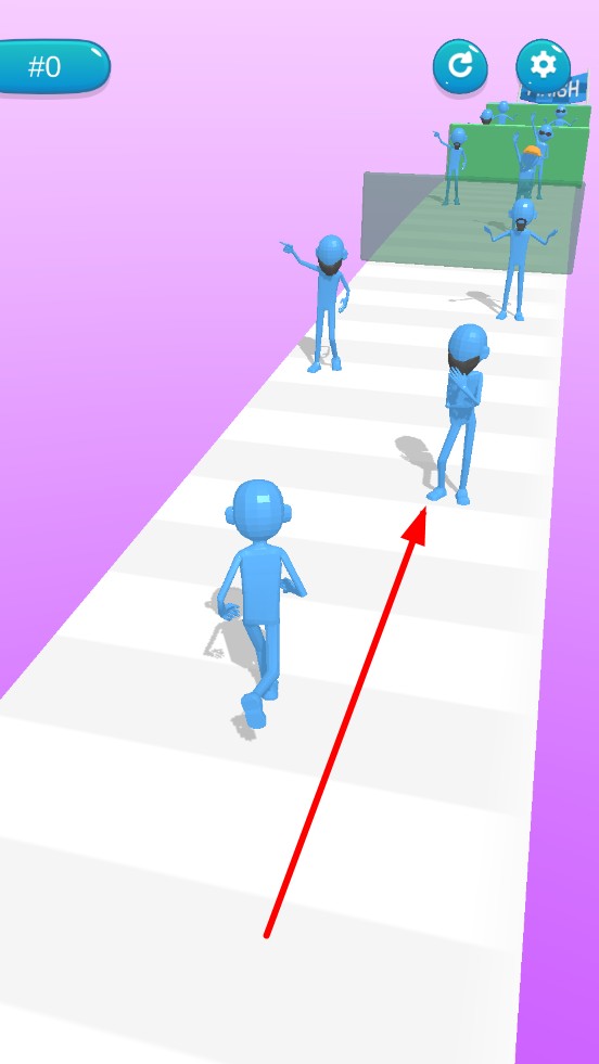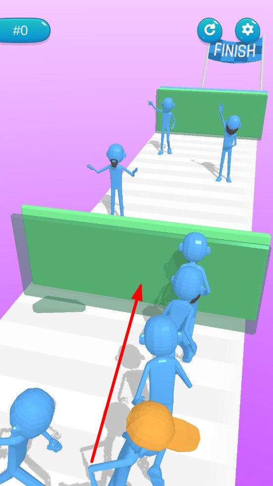 2、遭遇綠色擋板時,人數(shù)達標即可直接沖破,玩家需要盡可能多地收集藍色小人,為自己所用。