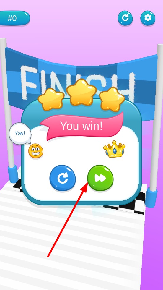 3、沖過終點后,依據(jù)隊伍規(guī)模與通關時間獲取星評,三星評價解鎖加速道具,點擊下一關挑戰(zhàn)更復雜的賽道。
