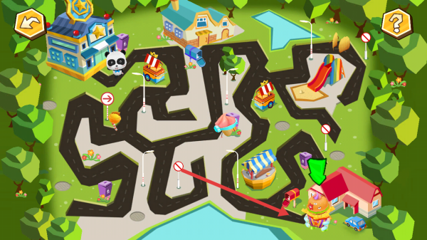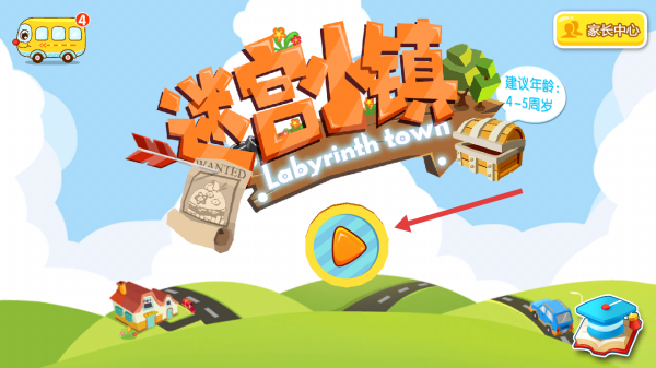 1、點(diǎn)擊迷宮小鎮(zhèn)Labyrinth town啟動(dòng)頁(yè)播放按鈕,進(jìn)入卡通地圖界面,操控熊貓角色,開(kāi)啟小鎮(zhèn)探索。