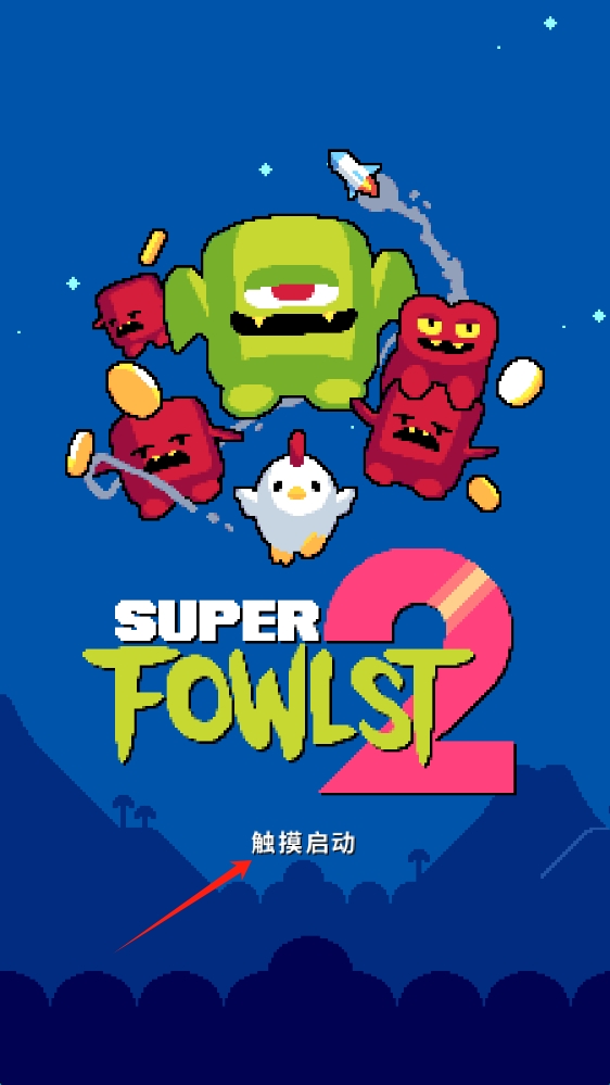 1、啟動(dòng)界面,觸摸屏幕,開(kāi)啟SUPER-FOWLST-2的冒險(xiǎn)之旅,踏入游戲世界。