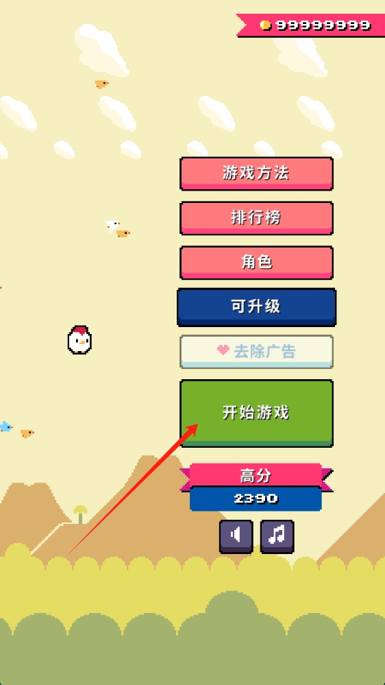 2、主界面,點(diǎn)擊開(kāi)始游戲,選擇關(guān)卡,操控小雞角色,開(kāi)啟闖關(guān)游戲的挑戰(zhàn)。