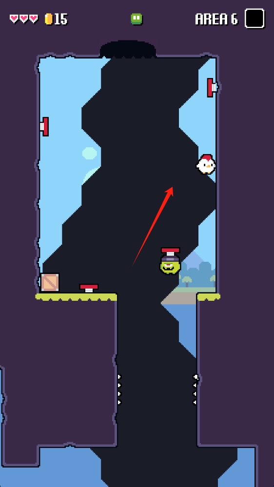 3、關(guān)卡界面,在AREA-6場(chǎng)景中,靈活操控小雞,收集金幣,巧妙躲避敵人,推進(jìn)游戲。