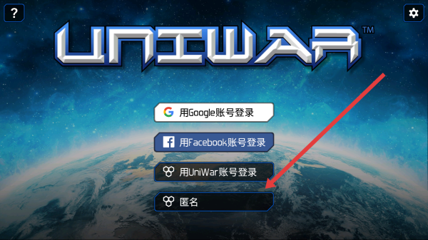 1、在UniWar登錄界面,點擊下方匿名按鈕,無需賬號快速進入游戲,開啟星際策略對戰(zhàn)的體驗之旅。
