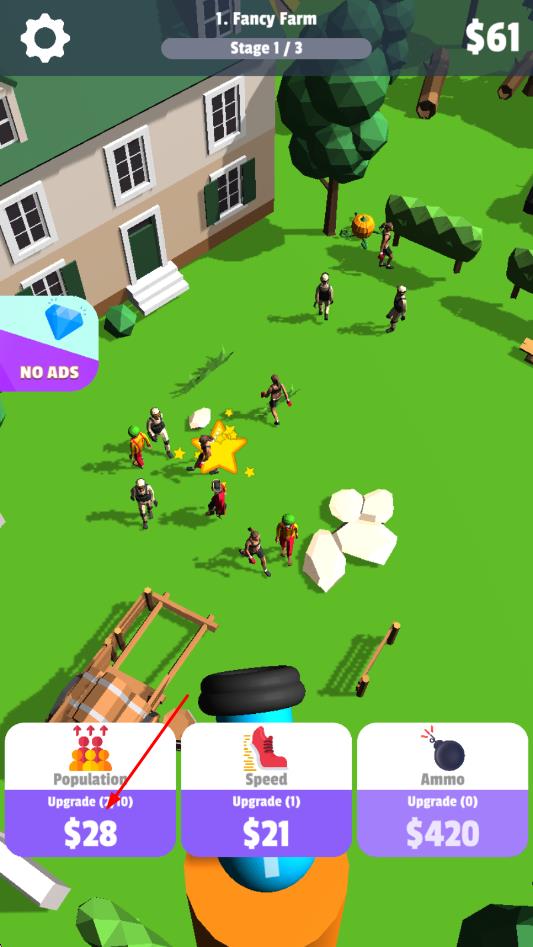 3、通關(guān)后解鎖新主題場(chǎng)景與更強(qiáng)攻擊道具,面對(duì)數(shù)量更多移動(dòng)更快的敵對(duì)人群,運(yùn)用技巧完成更高難度挑戰(zhàn)。