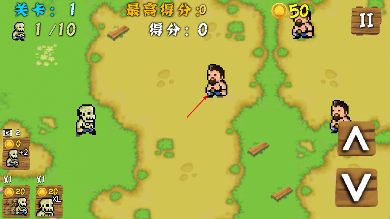 1、進(jìn)入游戲后選擇初始關(guān)卡,點(diǎn)擊屏幕操控角色移動(dòng),拾取地面武器裝備應(yīng)對(duì)首批出現(xiàn)的敵人。