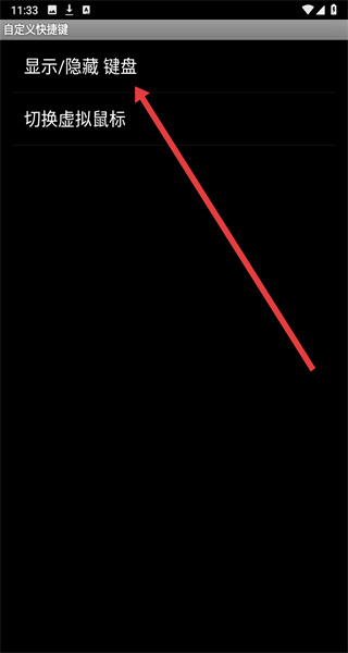 3、在自定義快捷鍵頁(yè)面中,可以選擇點(diǎn)擊顯示/隱藏鍵盤選項(xiàng),進(jìn)行設(shè)置快捷鍵。