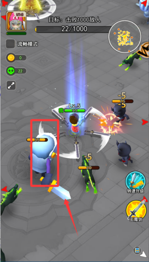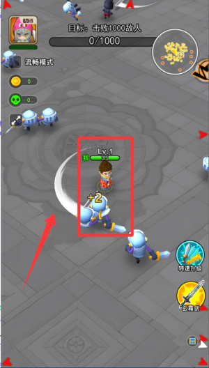 1、進(jìn)入游戲后熟悉控制方式、左右滑動屏幕操縱角色移動。點(diǎn)擊敵人方向揮舞大寶劍、練習(xí)連擊技巧快速清理小兵。