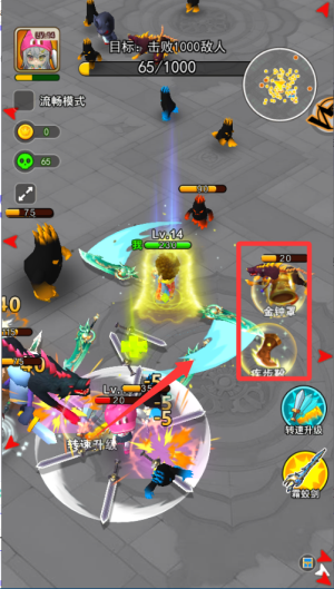 1、基礎(chǔ)操作簡單直觀,單手指滑動控制角色移動,自動觸發(fā)旋轉(zhuǎn)攻擊。長按屏幕可蓄力釋放范圍斬?fù)簦p松應(yīng)對群敵圍攻。