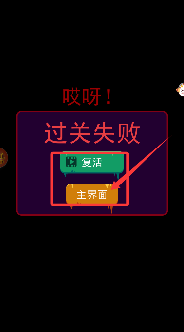 4、挑戰(zhàn)失敗時(shí)可選擇觀看激勵(lì)視頻續(xù)關(guān),或直接退出返回模式選擇頁。