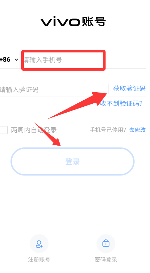 2、輸入手機號碼獲取驗證碼點擊登錄。