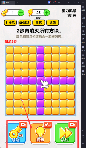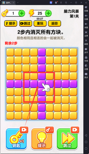 3、游戲精心設(shè)置了共計(jì)89個(gè)關(guān)卡,涵蓋多種消除模式,像三消類、種類消除、數(shù)字消除、計(jì)算消除以及成語(yǔ)消除等。