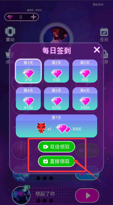 1、每日登錄可領取基礎鉆石獎勵,通過觀看廣告可獲得雙倍資源加成。