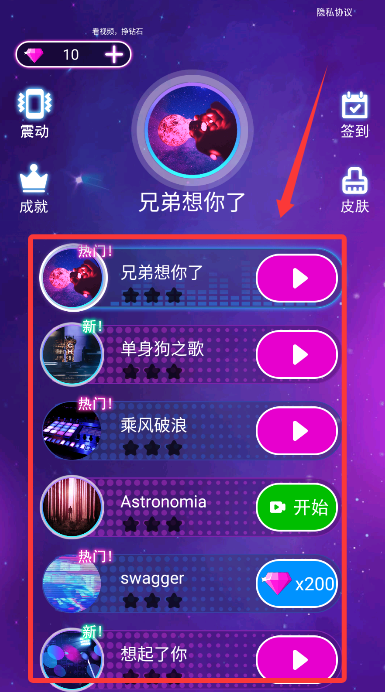 2、瀏覽曲庫選擇心動曲目,輕觸播放鍵即可開啟節(jié)奏挑戰(zhàn)之旅。