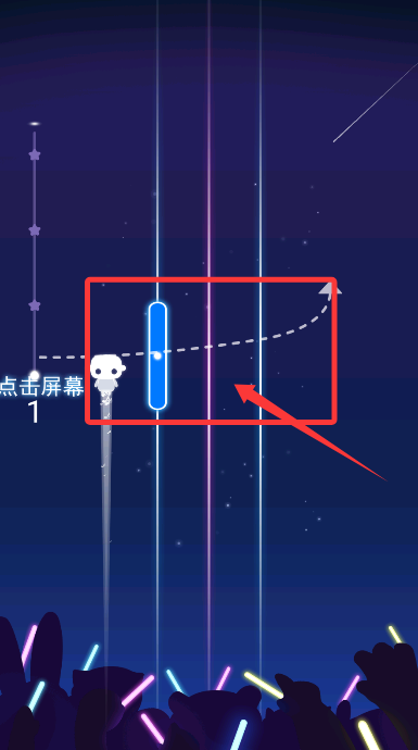 4、跟隨音樂節(jié)奏預判落點,在音符到達判定區(qū)時準確觸屏完成擊打。