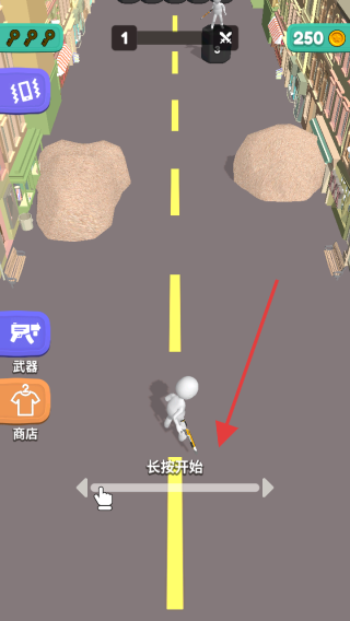 1、游戲開始時,長按長按開始按鈕控制角色前行,注意躲避道路上的石塊等障礙物。