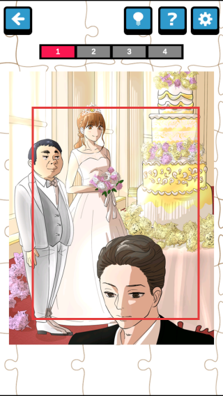 2、在婚禮場景拼圖關(guān)卡,觀察人物、蛋糕等元素,拼接完整畫面,推進(jìn)推理劇情。
