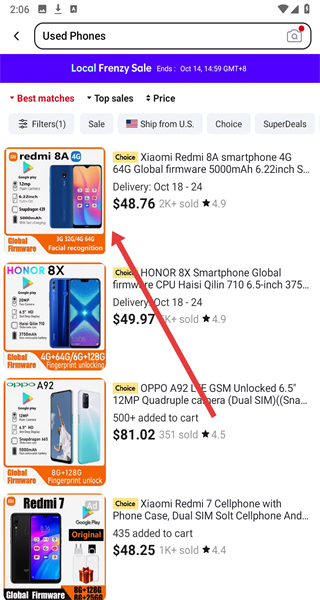 1、可以點(diǎn)擊選擇第一個(gè)商品,進(jìn)入查看商品詳情。