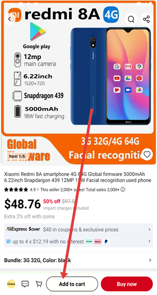 2、在進(jìn)入到商品詳情頁(yè)面中,可以點(diǎn)擊下方Add to cat按鈕添加到購(gòu)物車中。