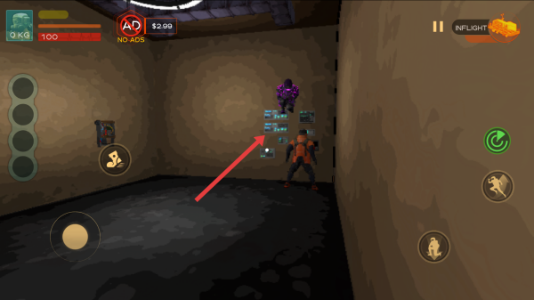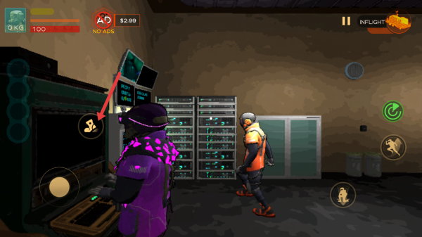 2、遇敵人時,點擊右下角的蹲下按鈕,隱藏基本的身形,繞開巡邏,繼續(xù)追尋線索,避免對敵正面沖突。