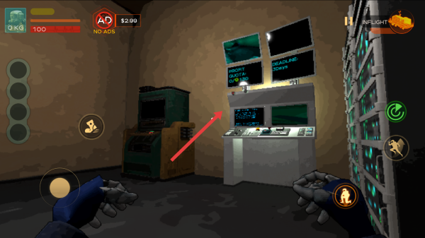 1、進入探索解密的場景,利用左側搖桿移動角色位置,靠近電腦的操作臺,按提示交互,獲取任務信息。