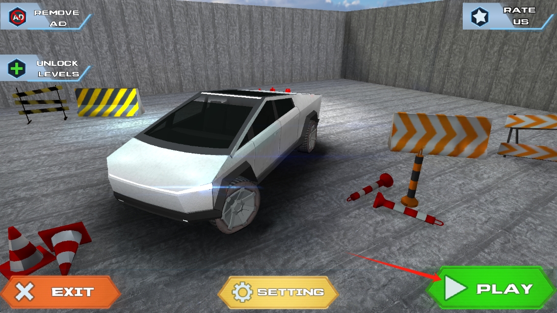 1、啟動(dòng)界面,點(diǎn)擊PLAY,開啟汽車障礙賽的冒險(xiǎn),進(jìn)入關(guān)卡選擇環(huán)節(jié),點(diǎn)擊開始游戲。