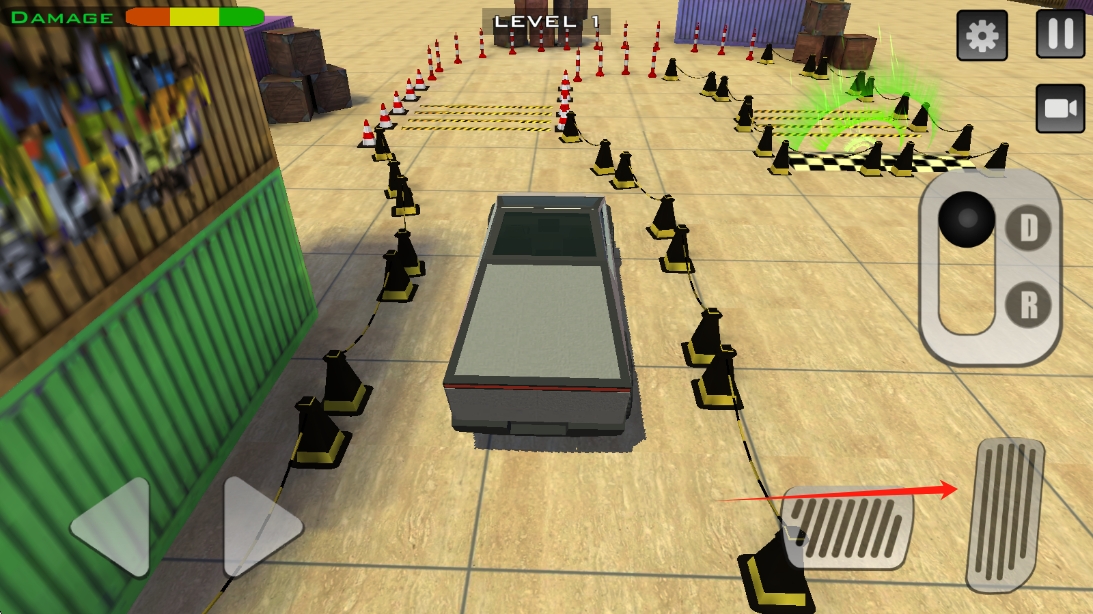 3、關(guān)卡界面,用右側(cè)踏板、方向按鈕,操控汽車躲避障礙,完成LEVEL-1的挑戰(zhàn),點(diǎn)擊加速。
