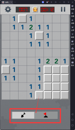 3、方格中數(shù)字則表示其周圍的8個(gè)方格隱藏了幾顆雷,玩家可以根據(jù)數(shù)字提示來推斷雷的位置,通過邏輯推理來完成掃雷挑戰(zhàn)。