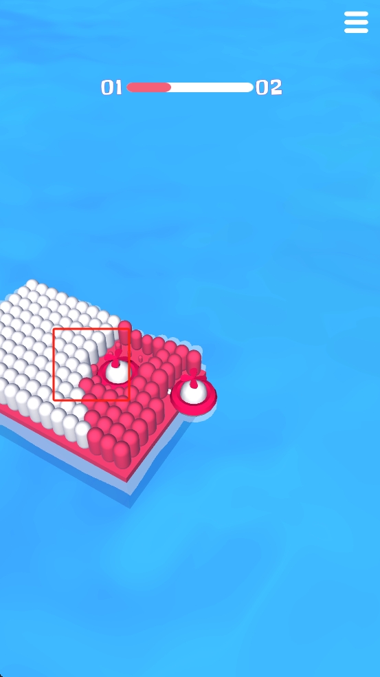 1、點(diǎn)擊下方按鈕開啟關(guān)卡,觀察帶裝飾的白色圓片位置,等待紅色區(qū)域開始擴(kuò)展,讓紅色逐步覆蓋白色小球矩陣。