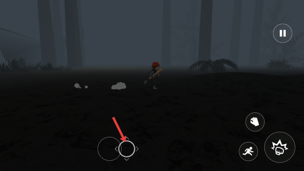 1、進入森林場景,滑動左側(cè)虛擬搖桿,控制角色向前奔跑移動,探索附近的場景,留意發(fā)光的物件。