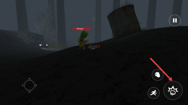 2、遇障礙時,點擊右側(cè)奔跑跳躍的按鈕,結(jié)合前進按鈕,加速跳躍翻越,繼續(xù)推進,尋找其他的物資。