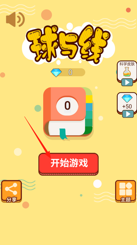2、打開球與線游戲,看到主界面的開始游戲按鈕,點它進入關卡,準備玩連線闖關,用線條把同色球連起來,消除得分,開啟趣味消除之旅。