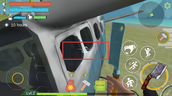 2、靠近飛機時,點擊Open交互鍵,嘗試進(jìn)入飛機內(nèi)部,探索獲取物資,提升角色等級。