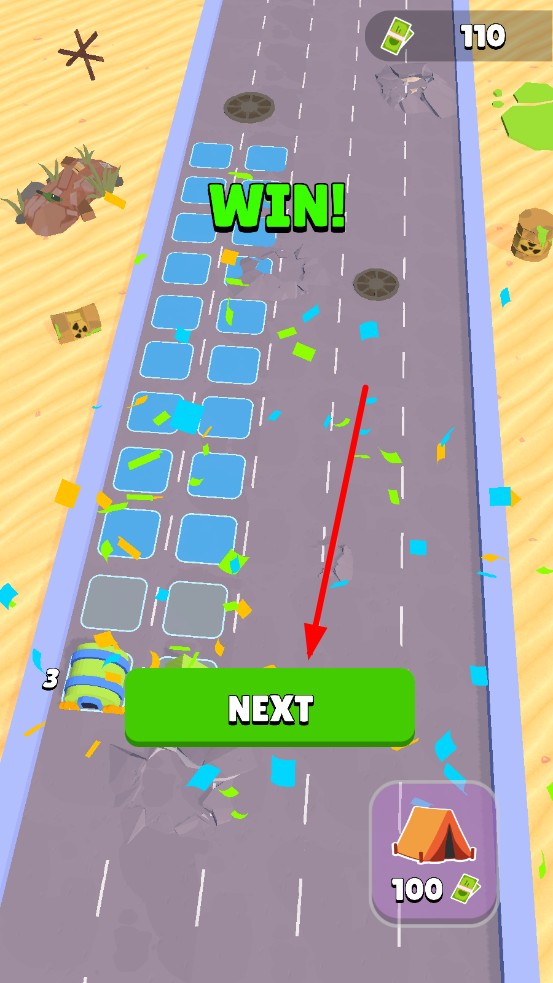 3、成功摧毀所有傳送門后,屏幕顯示W(wǎng)IN字樣,點(diǎn)擊NEXT按鈕解鎖新關(guān)卡,每關(guān)結(jié)算的金幣,可以解鎖更高級防御單位。