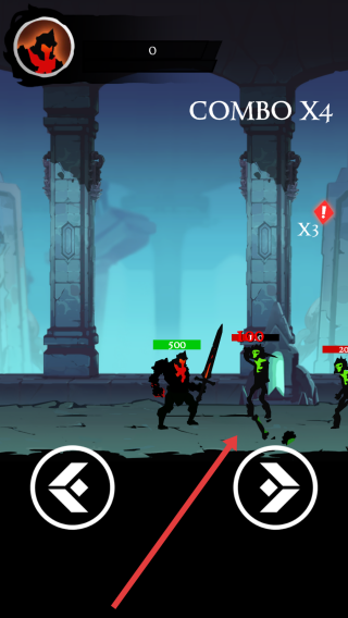 2、操控角色逼近敵人,再次點擊方向鍵,打出COMBO連擊,消滅綠色敵人,積累連擊數(shù)提升戰(zhàn)斗傷害,推進關(guān)卡進程。