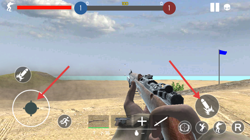 1、通過虛擬搖桿控制角色移動(dòng),滑動(dòng)屏幕調(diào)整射擊視角。