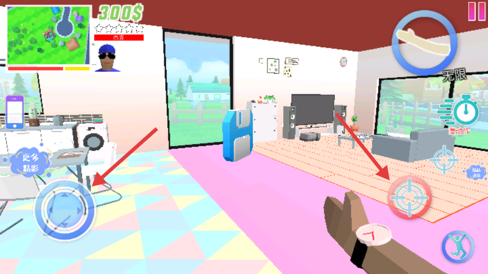1、通過虛擬搖桿控制角色移動(dòng),滑動(dòng)屏幕調(diào)整狙擊鏡視角。