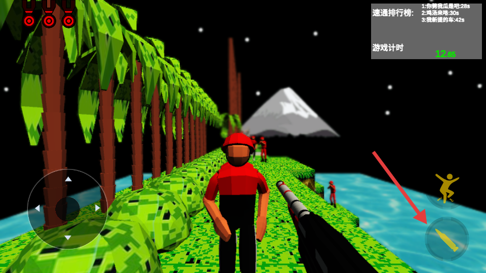 1、左手虛擬搖桿控制移動(dòng),右手滑動(dòng)屏幕調(diào)整射擊視角。