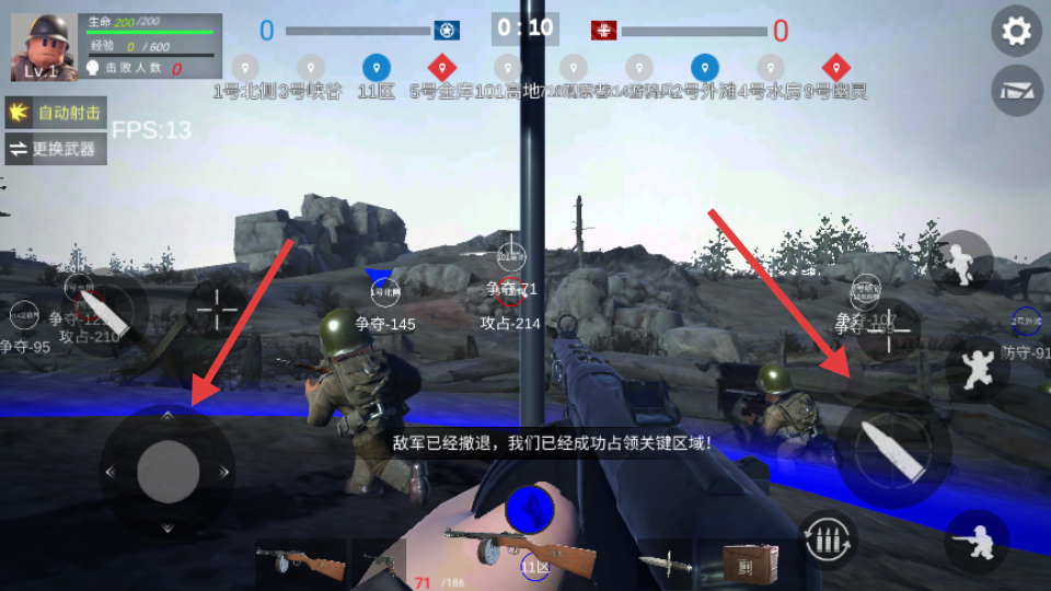 3、占領(lǐng)地圖中央戰(zhàn)略點獲取積分,團隊率先達到目標分數(shù)即獲勝。