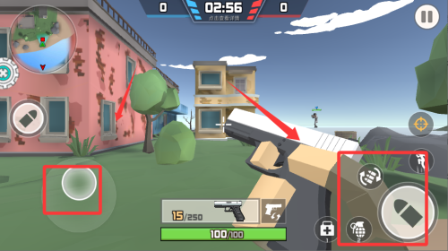1、進(jìn)入游戲后先選一個(gè)模式開始,用虛擬搖桿控制角色移動,瞄準(zhǔn)時(shí)切換射擊鍵,熟悉第一人稱視角的操作方式。