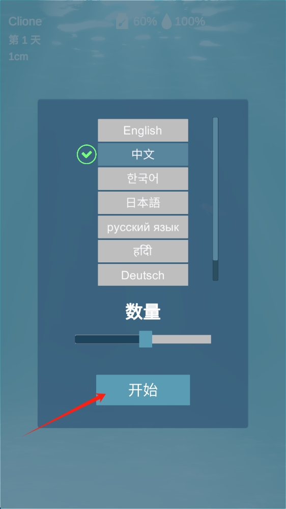 1、初始設(shè)置,選中文,調(diào)數(shù)量,點(diǎn)開始,進(jìn)入生物培育模擬游戲,點(diǎn)擊開始當(dāng)前游戲。