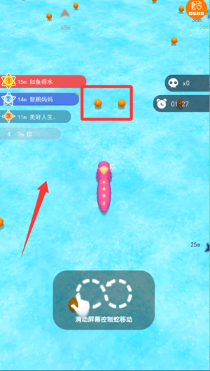 3、隨著身體變長,轉(zhuǎn)彎要提前規(guī)劃路線,利用身體圍住目標再逼進,小心操作才能順利完成圍剿和吞噬。