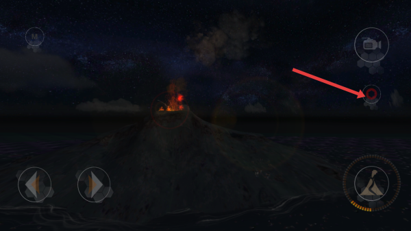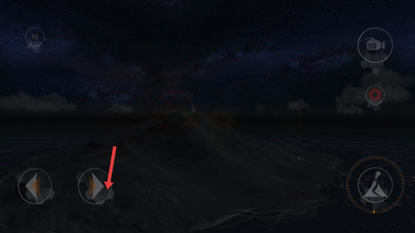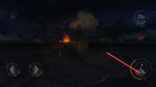 1、操控左右的箭頭的按鈕,移動(dòng)觀察的視角,逐漸靠近火山的區(qū)域范圍,觀察噴發(fā)前兆。