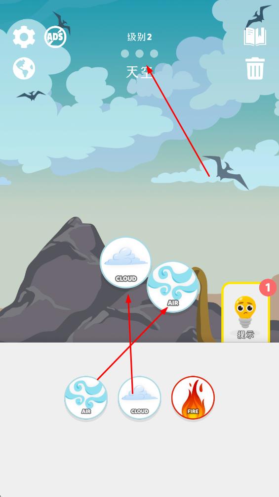 2、元素組合生成新物:提供多樣初始元素,玩家可將不同元素進(jìn)行組合,從而合成全新元素,從簡單的自然元素到復(fù)雜的現(xiàn)象或災(zāi)害,每一次組合都可能帶來新發(fā)現(xiàn)。