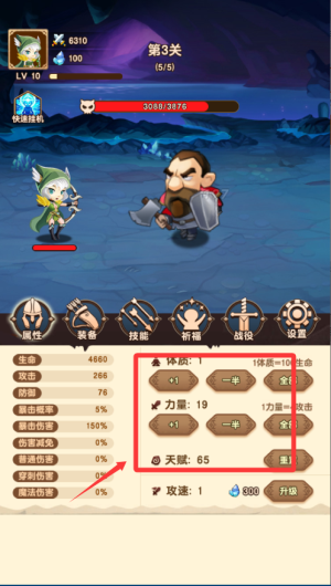 2、資源管理貫穿全程,金幣需分配于角色升級(jí)、裝備強(qiáng)化或天賦重置。高階關(guān)卡要求精確計(jì)算投入比例,例如優(yōu)先提升暴擊率還是攻速。