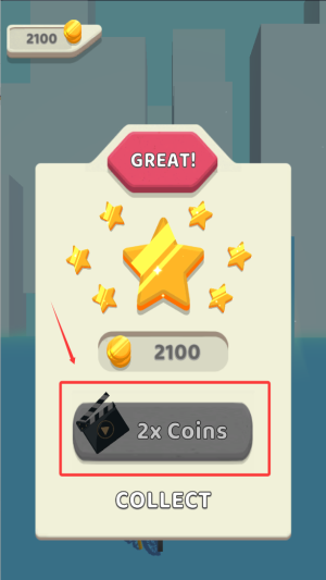 3、完成關卡后選擇觀看廣告視頻,可獲得當次比賽收益的雙倍獎勵,每日限五次機會。