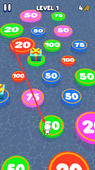 2、角色跳躍至數(shù)字平臺(tái)區(qū)域,踩踏平臺(tái)收集分?jǐn)?shù)道具,同時(shí)規(guī)劃跳躍路徑,避免落入下方水域,積累關(guān)卡分?jǐn)?shù)。