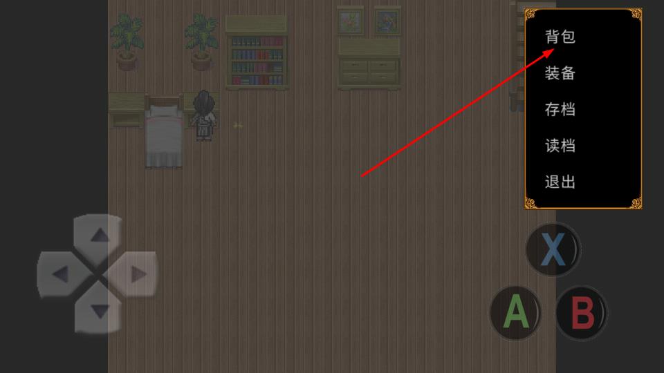 3、探索場景時,通過左側(cè)方向鍵移動角色,需要借助功能菜單管理道具與裝備,為后續(xù)冒險籌備資源。