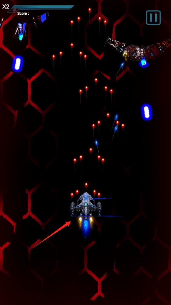 2、游戲中,操控飛船靈活移動,射擊敵方戰(zhàn)機(jī),躲避彈幕攻擊,積累分?jǐn)?shù),滑動移動人物。