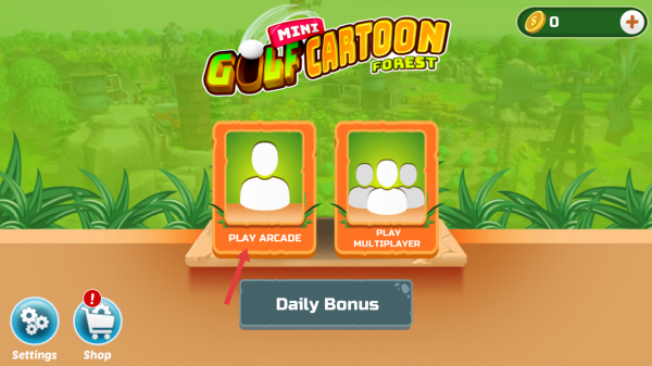 1、進入游戲主界面,點擊PLAY ARCADE單人模式卡片,開啟高爾夫冒險關(guān)卡。
