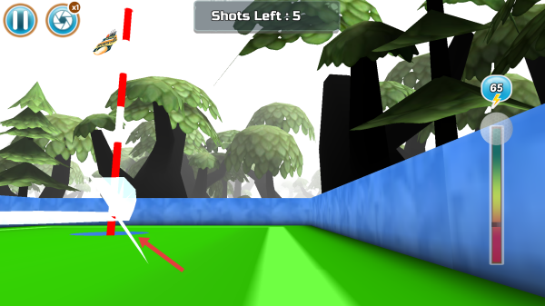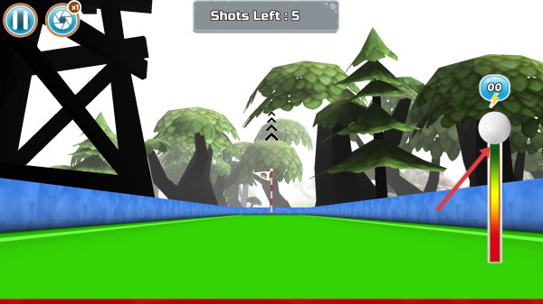 2、在關(guān)卡內(nèi),觀察球洞位置,長按調(diào)整右側(cè)力度條,瞄準后松開擊球,嘗試5桿內(nèi)進洞。